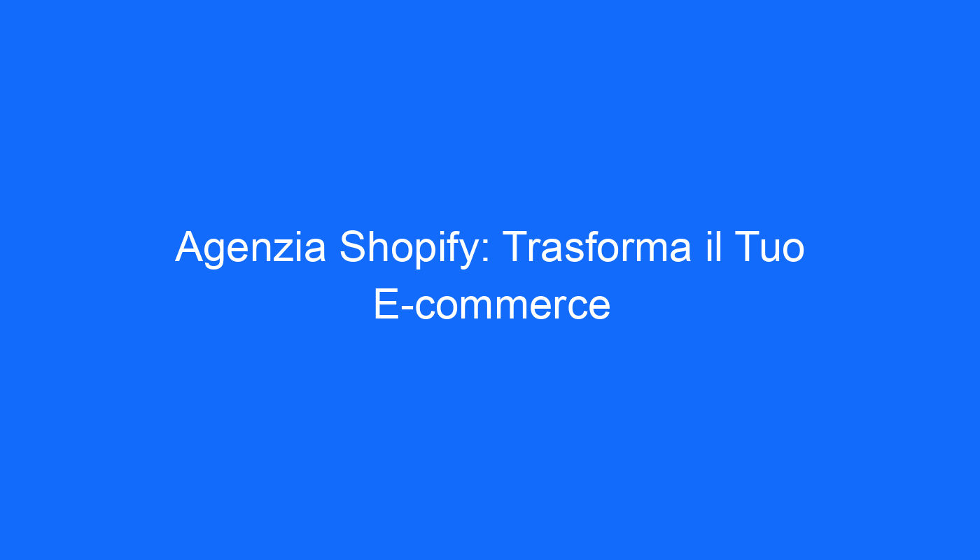Agenzia Shopify: Il Vostro Compagno di Viaggio nell’Innovazione Digitale