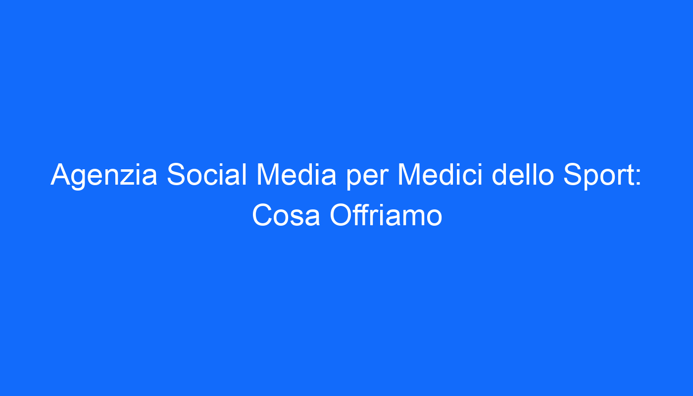 Agenzia Social Media per Medici dello Sport: Cosa Offriamo