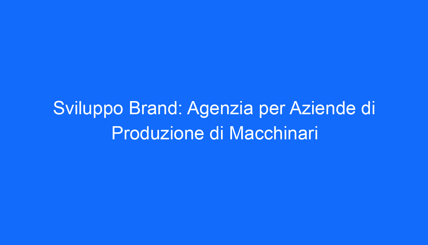 Come Sviluppo Brand può aiutare a creare un marchio di successo per le aziende di produzione di macchinari?
