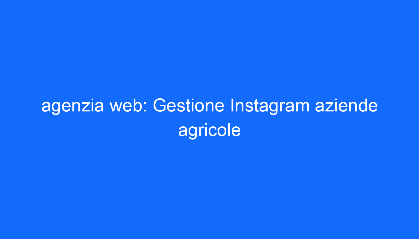 Agenzia Web: Gestione Instagram Aziende Agricole