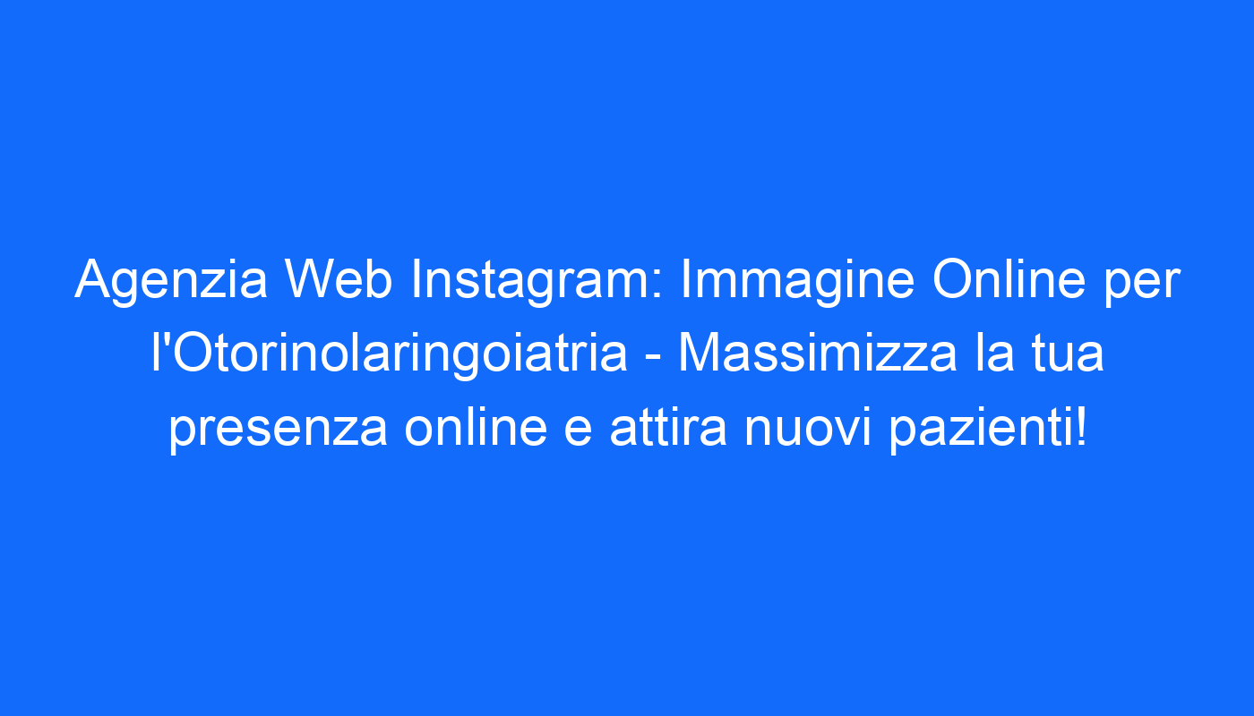 La Web Agency Instagram: Immagine Online è la scelta ideale per migliorare la tua presenza online come otorinolaringoiatra. Con i nostri servizi professionali, potrai raggiungere un pubblico più ampio, attirare nuovi pazienti e massimizzare il successo della tua attività. Non perdere l’opportunità di distinguerti dalla concorrenza e di offrire i tuoi servizi di otorinolaringoiatria a un pubblico sempre più digitale. Contattaci oggi stesso per ulteriori informazioni e per iniziare a migliorare la tua presenza online!