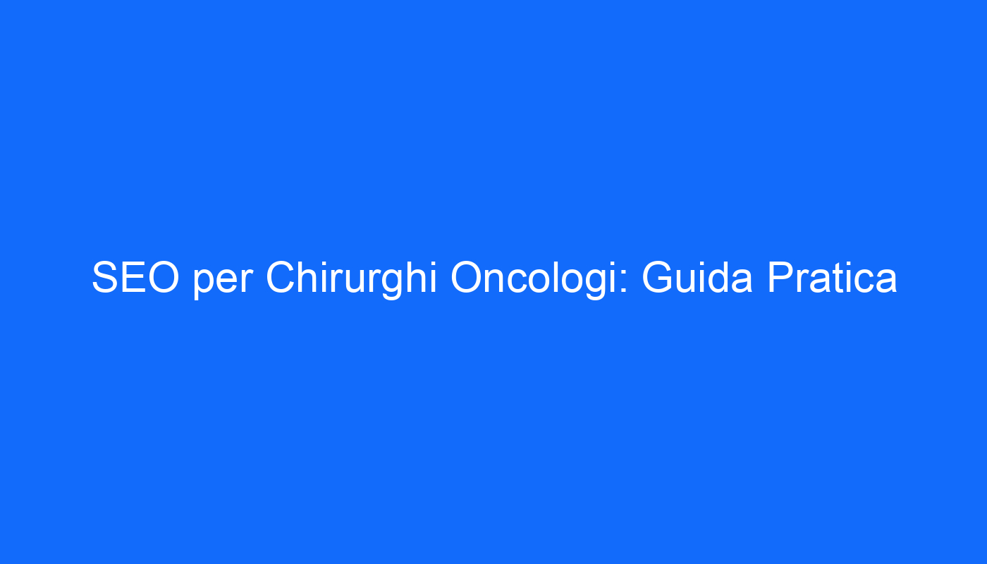 L’Arte della Scrittura SEO per I Chirurghi Oncologi