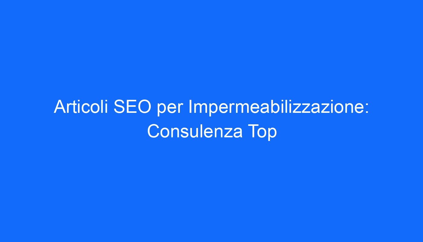 Gli Articoli SEO per l’Impermeabilizzazione: Consulenza Top