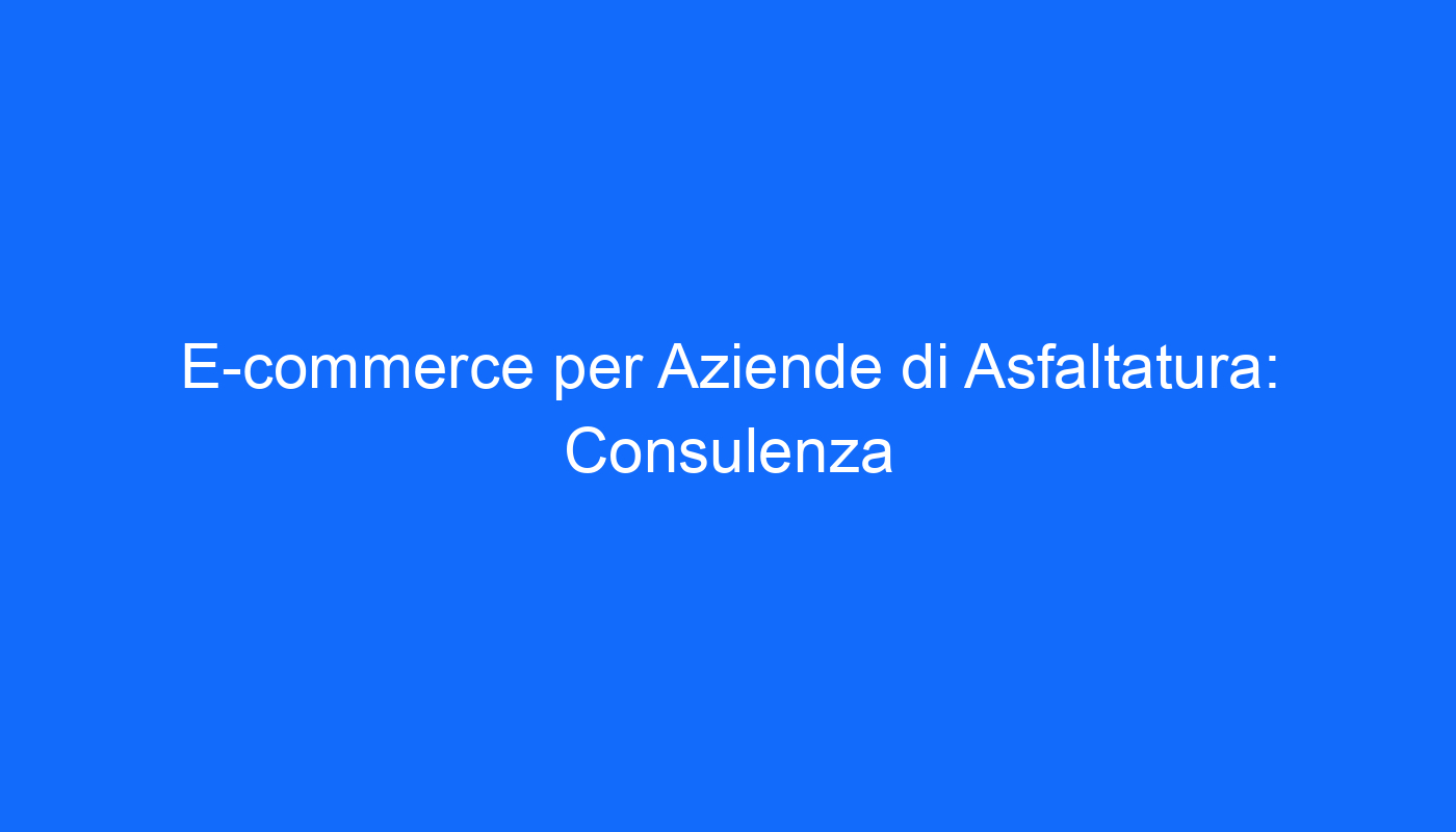 Consulenza E-commerce per Aziende di Asfaltatura: Massimizza il Tuo Potenziale Online