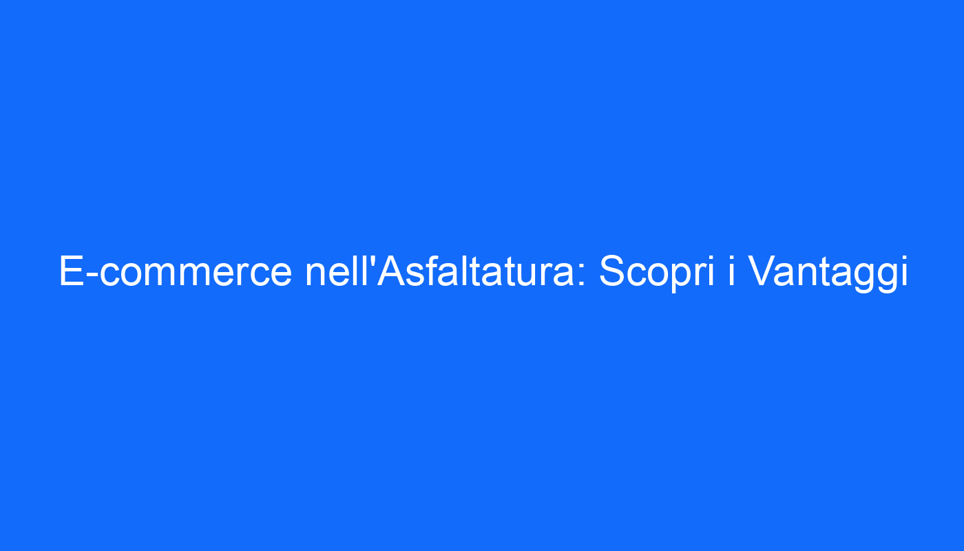 Nel corso degli ultimi anni, il mondo ha visto una rapida evoluzione nel modo in cui le aziende operano, soprattutto nel settore dell’asfaltatura. L’e-commerce ha aperto nuove frontiere, rendendo i servizi più accessibili e convenienti per una clientela sempre più informata e orientata alla tecnologia. In questo contesto, comprendere i vantaggi dell’e-commerce per il settore dell’asfaltatura è cruciale non solo per rimanere competitivi, ma anche per prosperare in un mercato in continua evoluzione.