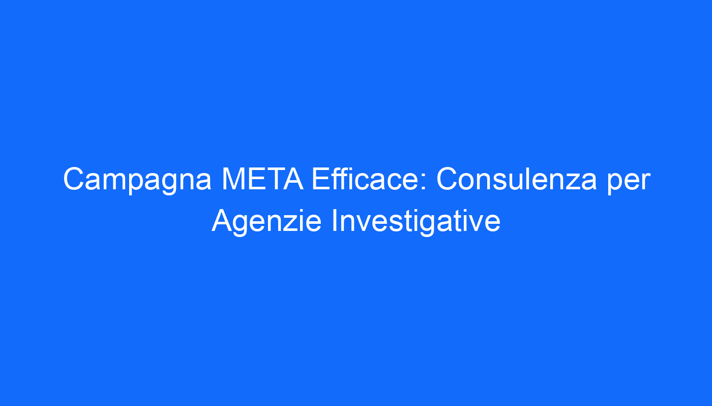 Campagna META Efficace: Consulenza per Agenzie Investigative