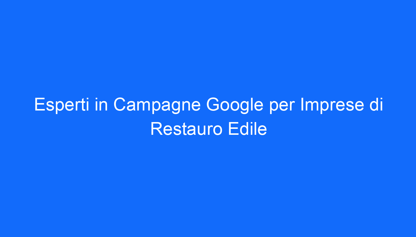 Affidarsi agli esperti in campagne Google per il restauro edile può fare la differenza nel successo della tua impresa. Ecco perché: