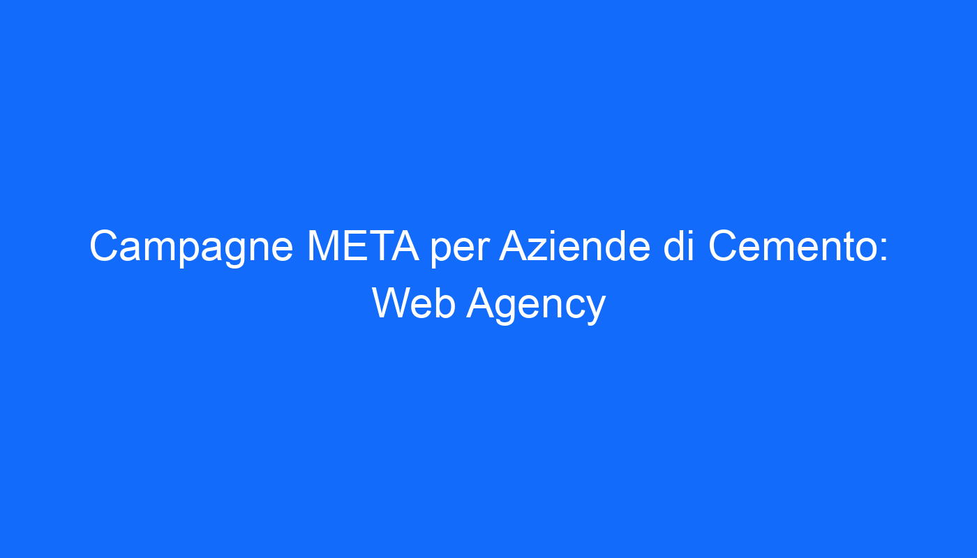 La visibilità online è essenziale per ogni azienda di cemento che desidera crescere e avere successo nel mercato. Una delle strategie più efficaci per aumentare la visibilità online è attraverso una Campagna META ben pianificata e realizzata da una Web Agency specializzata. In questo articolo esploreremo come una Campagna META può aiutare la tua azienda di cemento a raggiungere i tuoi obiettivi di visibilità online e come scegliere una Web Agency che possa fornirti risultati straordinari.