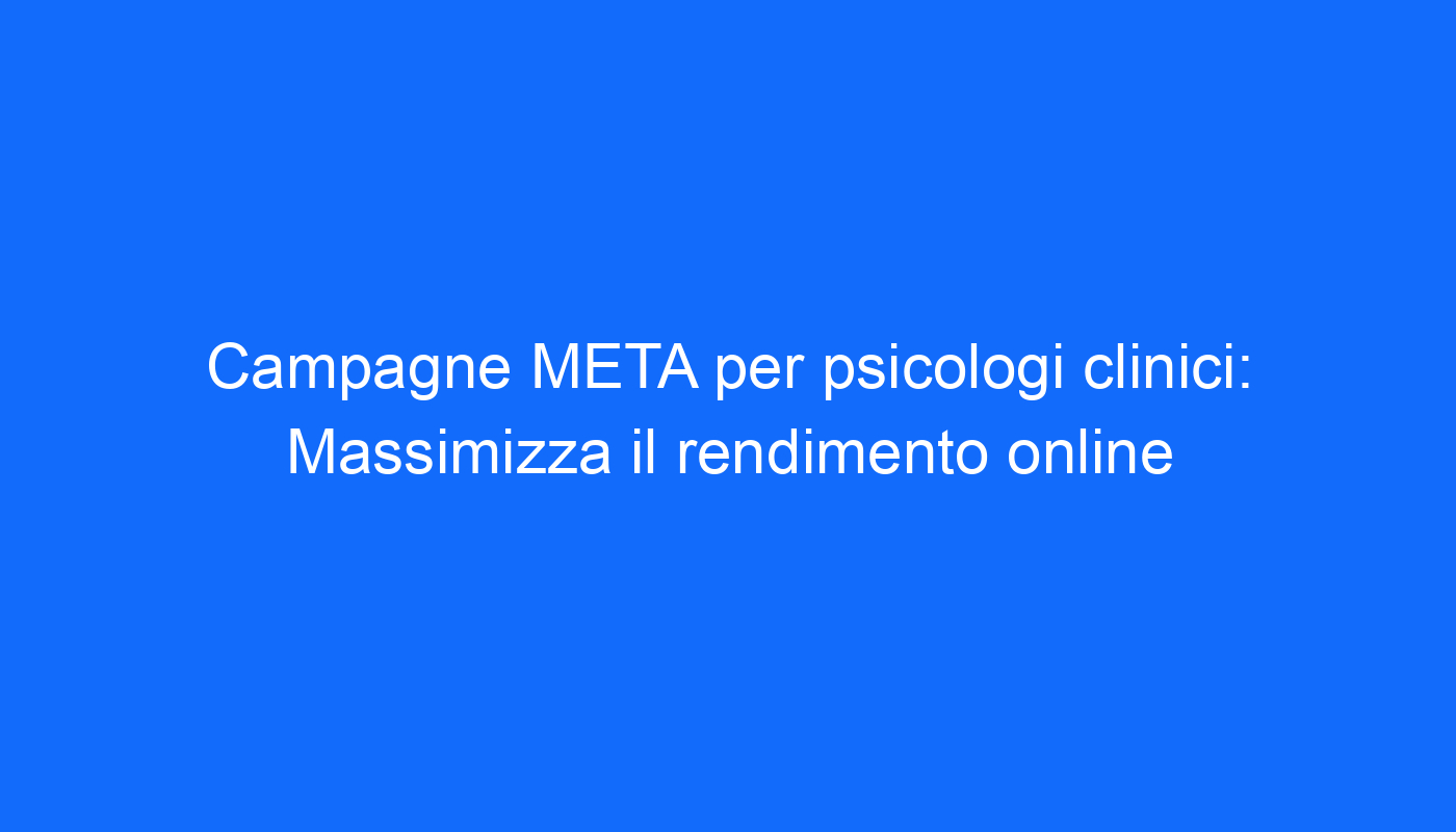 In un mondo sempre più digitalizzato, i professionisti della psicologia clinica devono essere in grado di adattarsi alle nuove sfide e opportunità offerte dal mondo online. Uno dei modi più efficaci per massimizzare il rendimento online è attraverso l’implementazione di una campagna META mirata. In questo articolo, esploreremo i vantaggi di una campagna META per i psicologi clinici e condivideremo alcune strategie chiave per raggiungere il successo online.