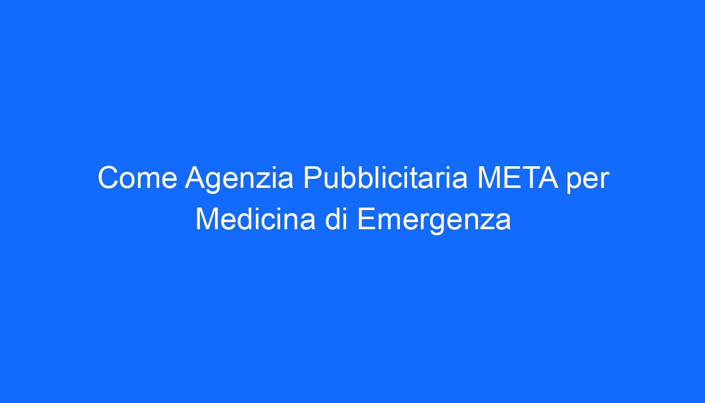 La Medicina di Emergenza è un settore cruciale che richiede una comunicazione chiara, tempestiva ed efficace per garantire la sicurezza dei pazienti e il successo delle operazioni di soccorso. In un contesto così delicato, è essenziale affidarsi a un’agenzia pubblicitaria specializzata nel campo della Medicina di Emergenza, come la META. Con anni di esperienza e una profonda conoscenza del settore, la META è in grado di offrire soluzioni pubblicitarie personalizzate e mirate per soddisfare le esigenze specifiche delle organizzazioni e dei professionisti della Medicina di Emergenza.