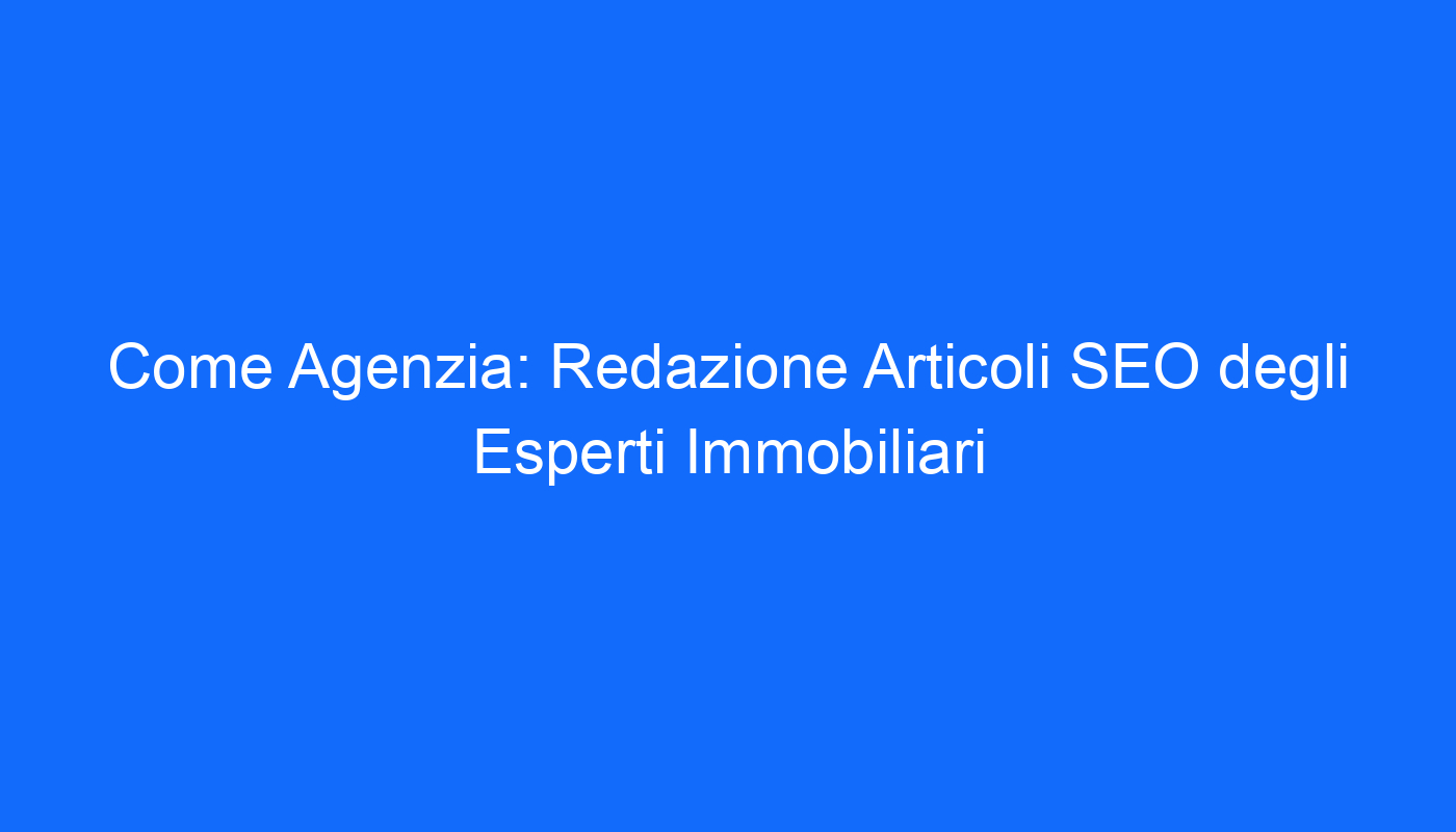 Hai mai desiderato aumentare la visibilità dei tuoi immobili online? Vorresti che i tuoi annunci raggiungessero un pubblico più ampio e attirassero clienti potenziali? Se la risposta è sì, allora la redazione di articoli SEO da parte degli esperti immobiliari di Come Agenzia potrebbe essere la soluzione ideale per te.