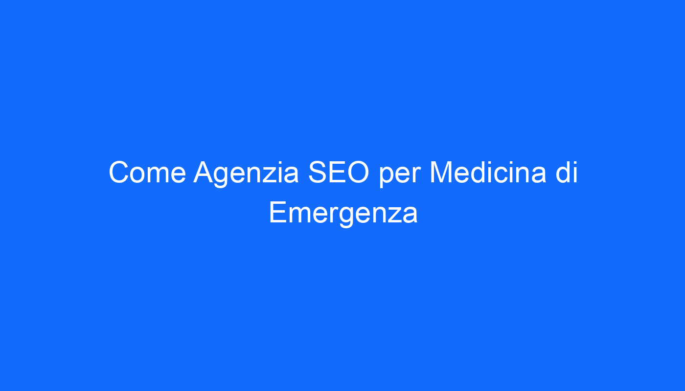 Hai bisogno di una strategia SEO per la Medicina di Emergenza?