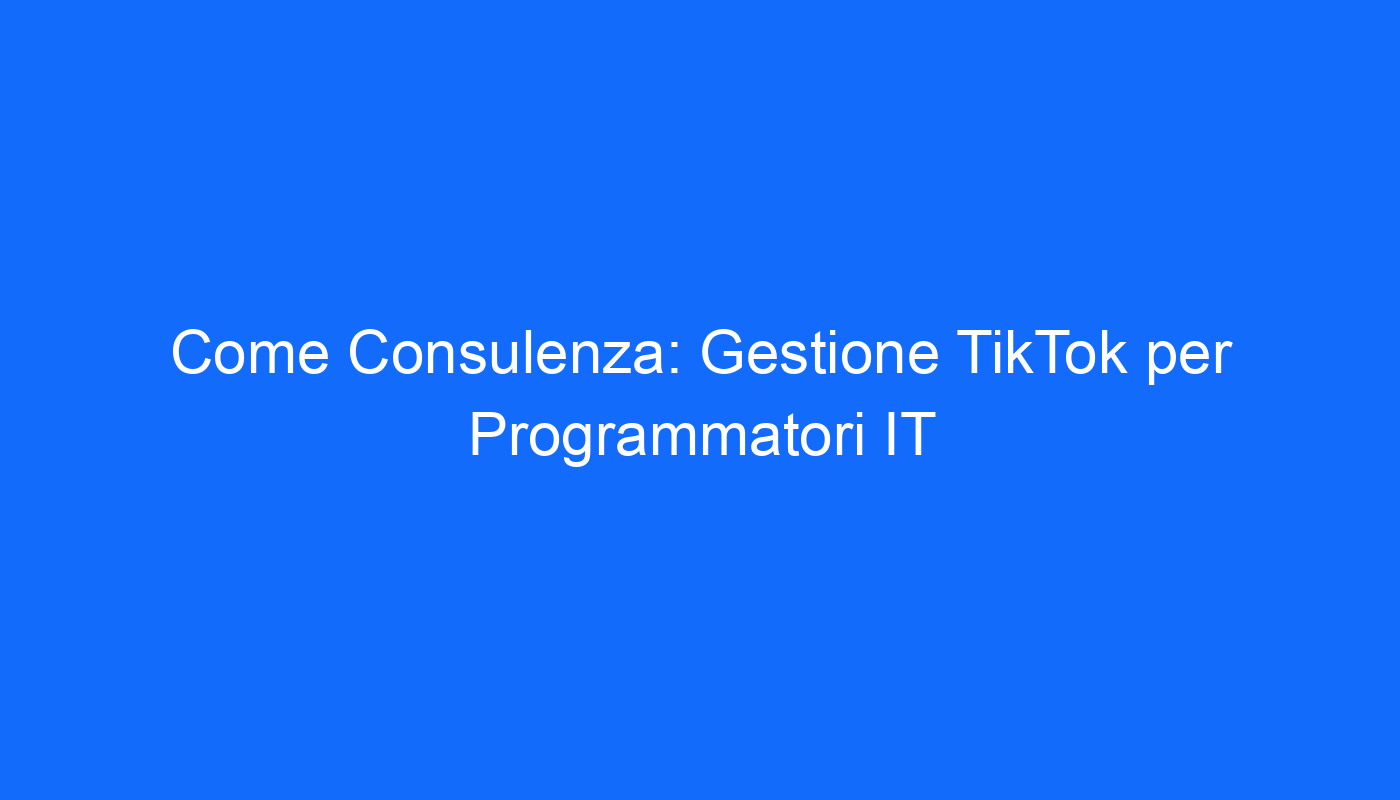 Come Consulenza: Gestione TikTok per Programmatori IT
