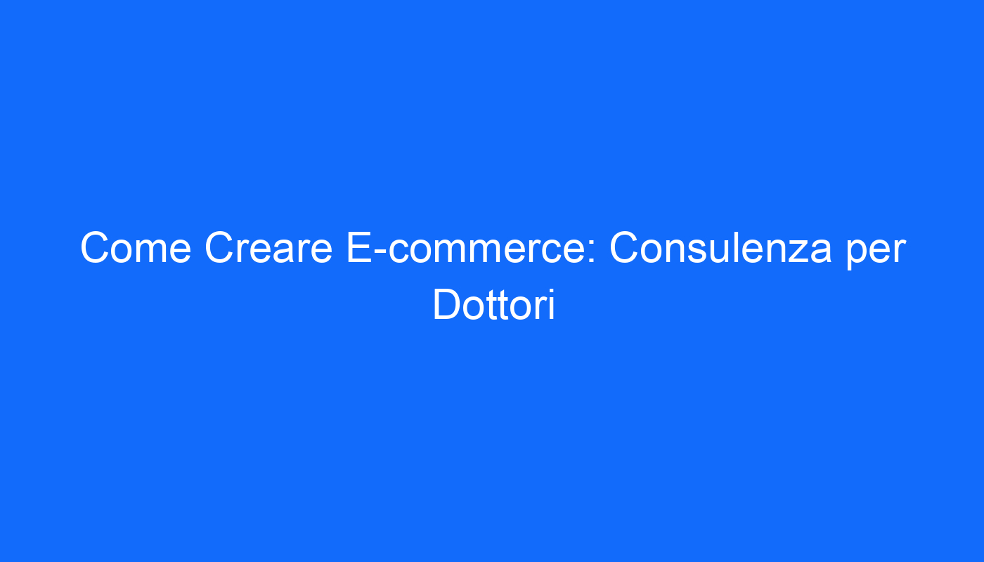 Creare un E-commerce per Dottori: L’Opportunità da non Perdere