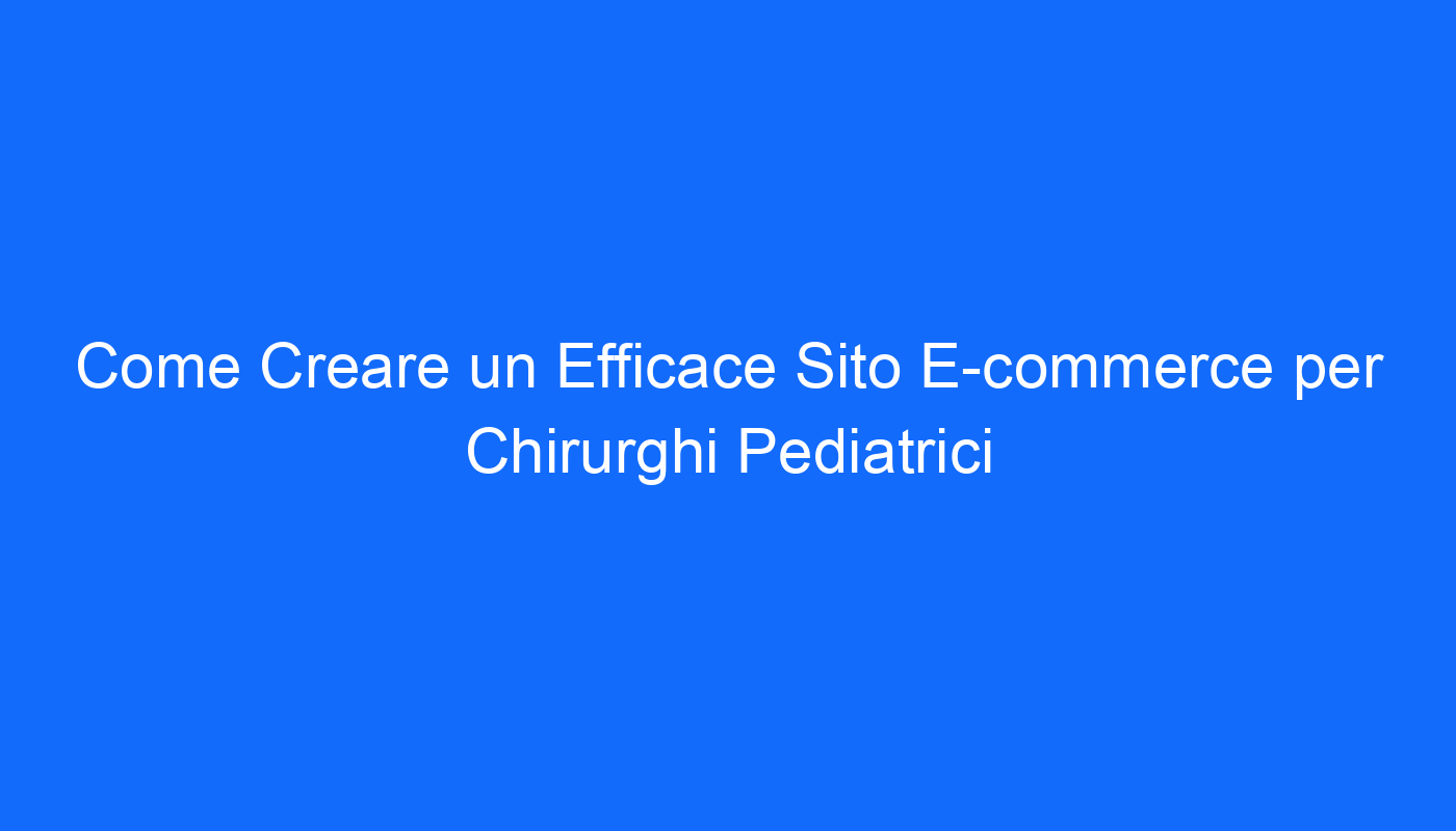 Come Creare un Efficace Sito E-commerce per Chirurghi Pediatrici