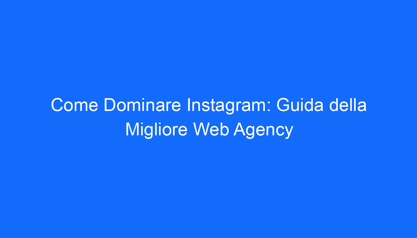 Come Dominare Instagram: Guida della Migliore Web Agency