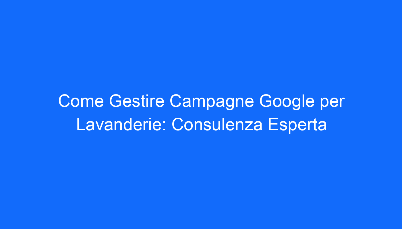 Come Gestire Campagne Google per Lavanderie: Consulenza Esperta