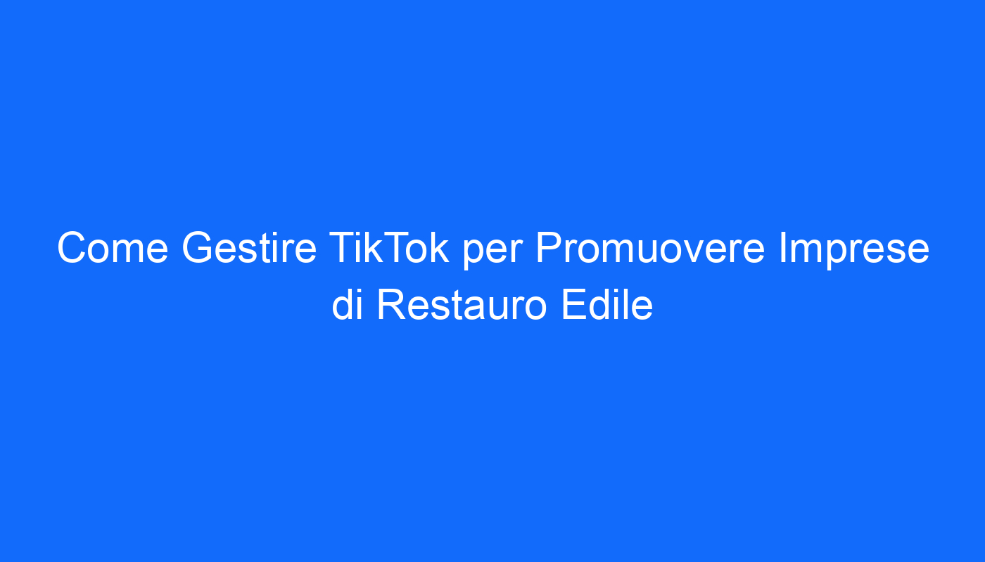 Negli ultimi anni, TikTok è diventato uno dei social media più popolari al mondo, con milioni di utenti attivi ogni giorno. Se sei un imprenditore nel settore del restauro edile, TikTok può essere un potente alleato per promuovere la tua attività e ottenere maggiore visibilità. In questo articolo, esploreremo strategie efficaci per gestire TikTok e sfruttare al massimo questo social media per promuovere la tua impresa di restauro edile.