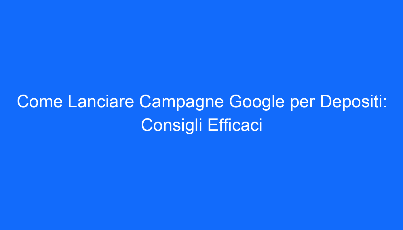 Scopri i consigli vincenti per lanciare campagne Google per depositi!
