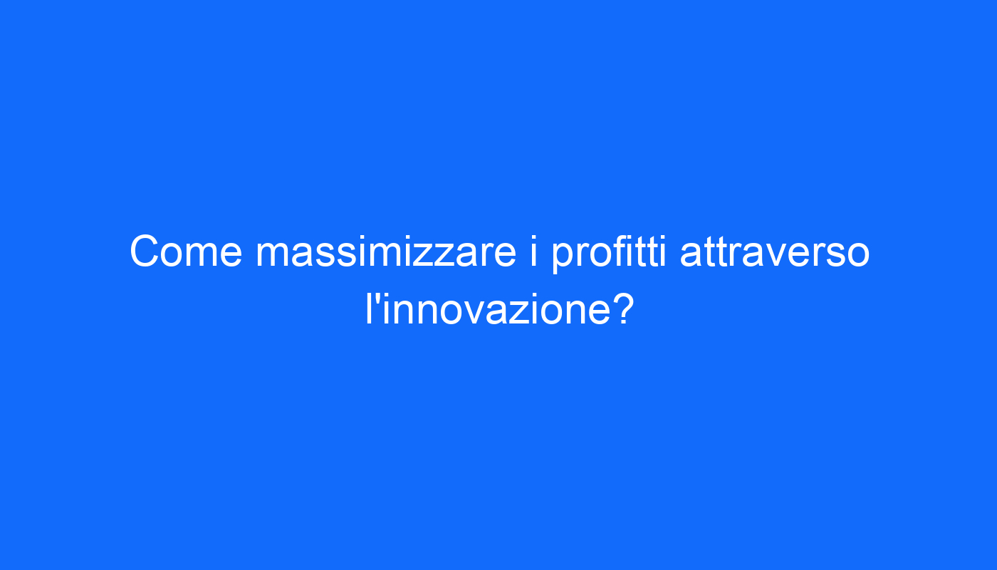 Come massimizzare i profitti attraverso l’innovazione?