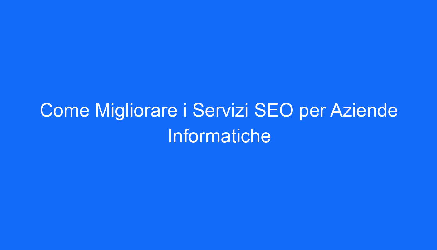 Come Migliorare i Servizi SEO per Aziende Informatiche
