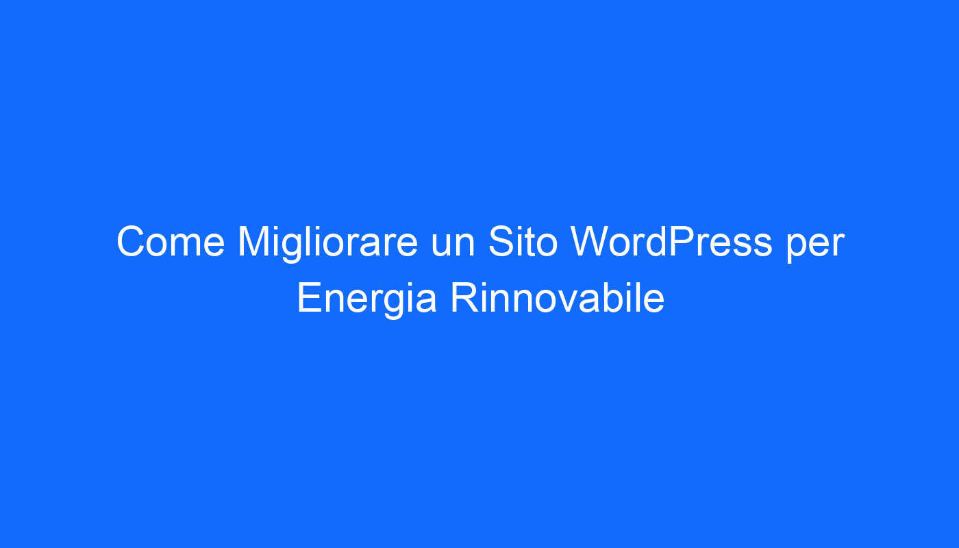Come Migliorare un Sito WordPress per Energia Rinnovabile