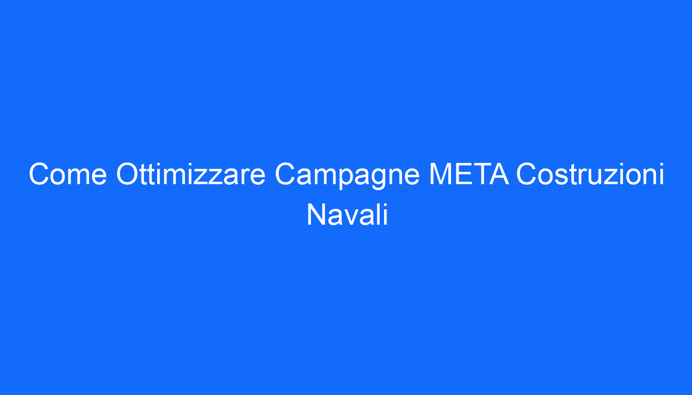 Strategie efficaci per ottimizzare il successo delle tue campagne META Costruzioni Navali