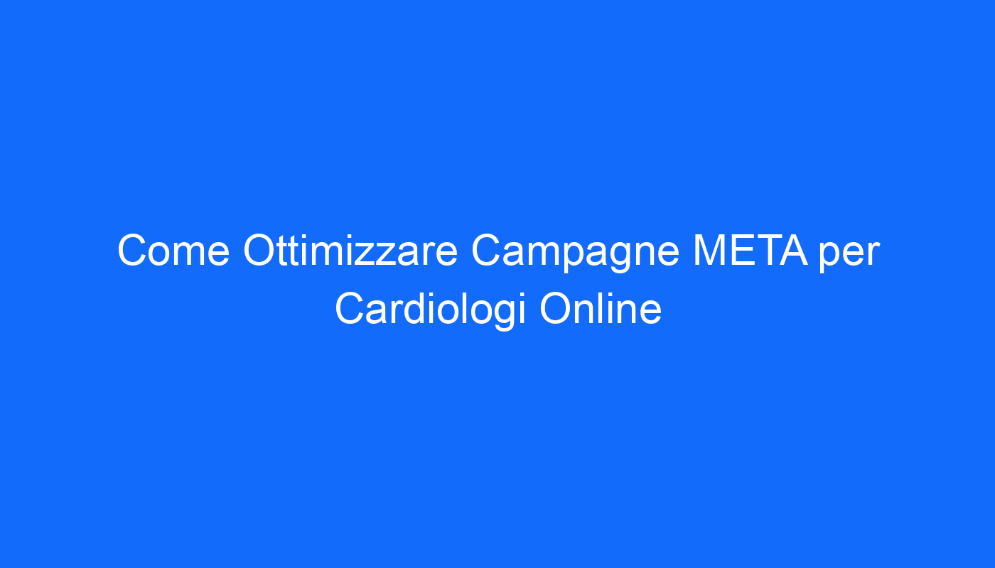 L’ottimizzazione delle campagne META è un aspetto cruciale per il successo di qualsiasi cardiologo online. Le campagne META servono a promuovere i servizi e le competenze dei medici specializzati nel cuore e a raggiungere un pubblico più ampio. Se sei un cardiologo online in cerca di modi per massimizzare il tuo successo attraverso l’ottimizzazione delle campagne META, sei nel posto giusto. In questo articolo, esploreremo alcune strategie vincenti per ottimizzare le campagne META per cardiologi online e raggiungere un pubblico più ampio.