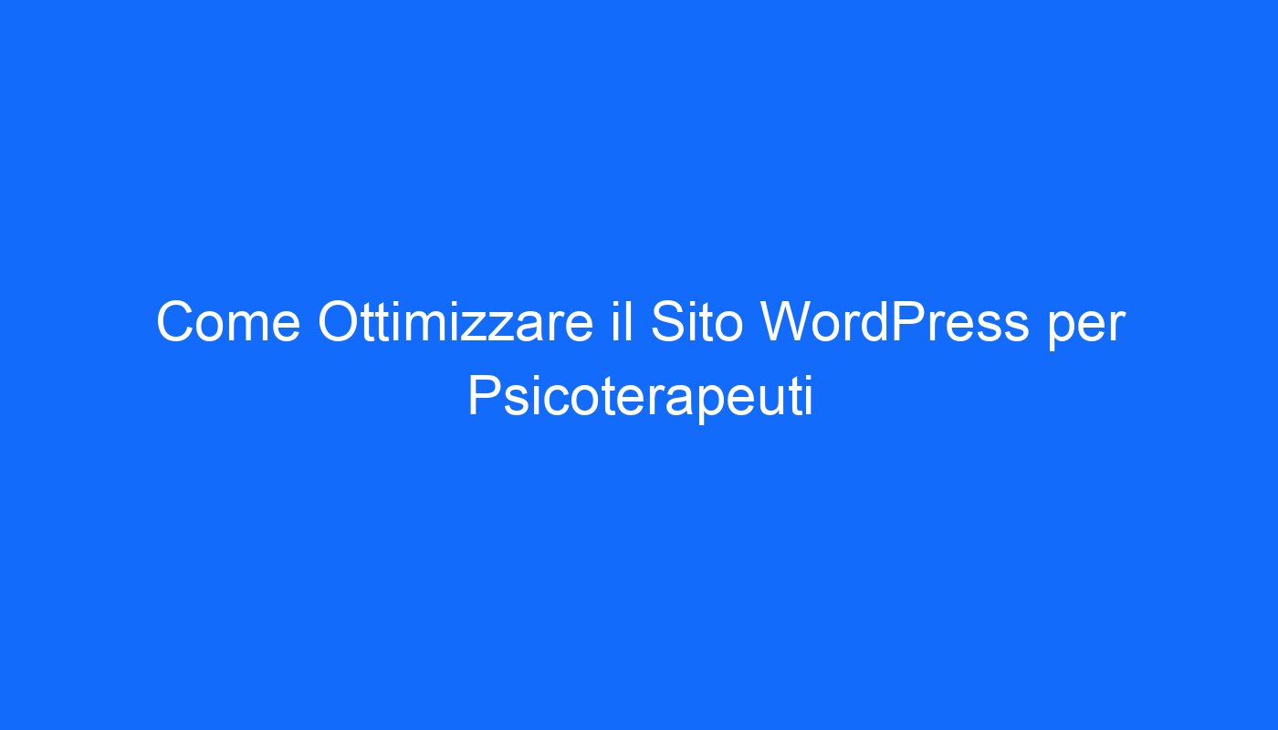 Migliora la Visibilità e l’Efficienza del tuo Sito WordPress da Psicoterapeuta
