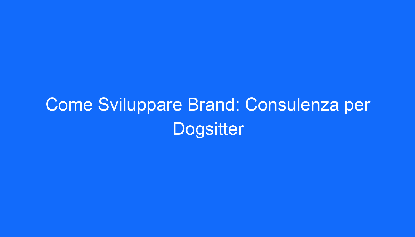 Come Sviluppare Brand: Consulenza per Dogsitter