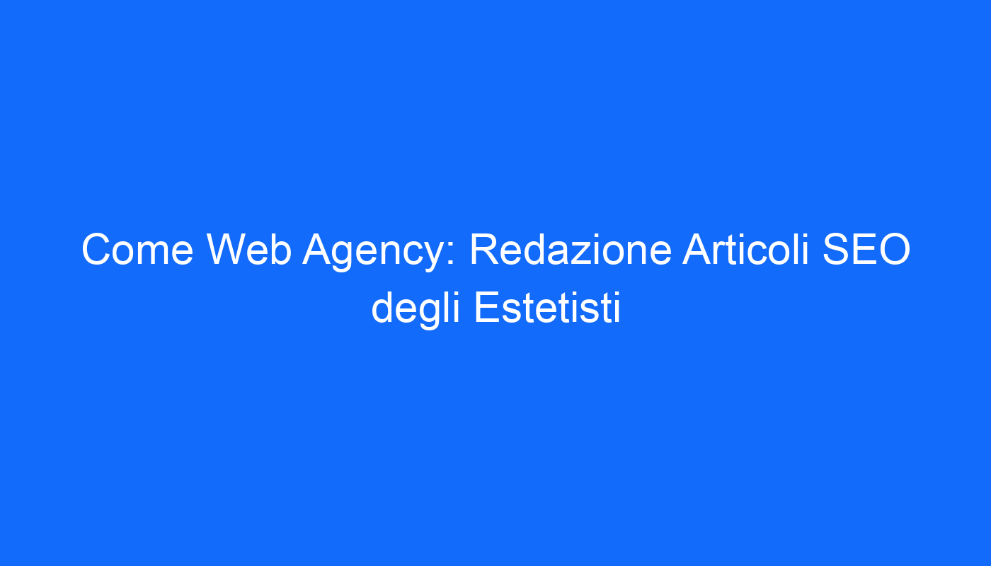 Come Web Agency: Redazione Articoli SEO degli Estetisti