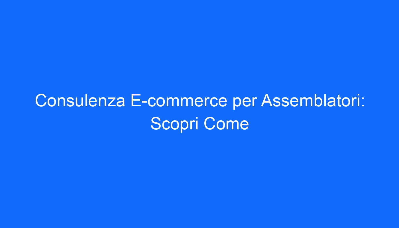 Consulenza E-commerce per Assemblatori: Massimizza le Opportunità!