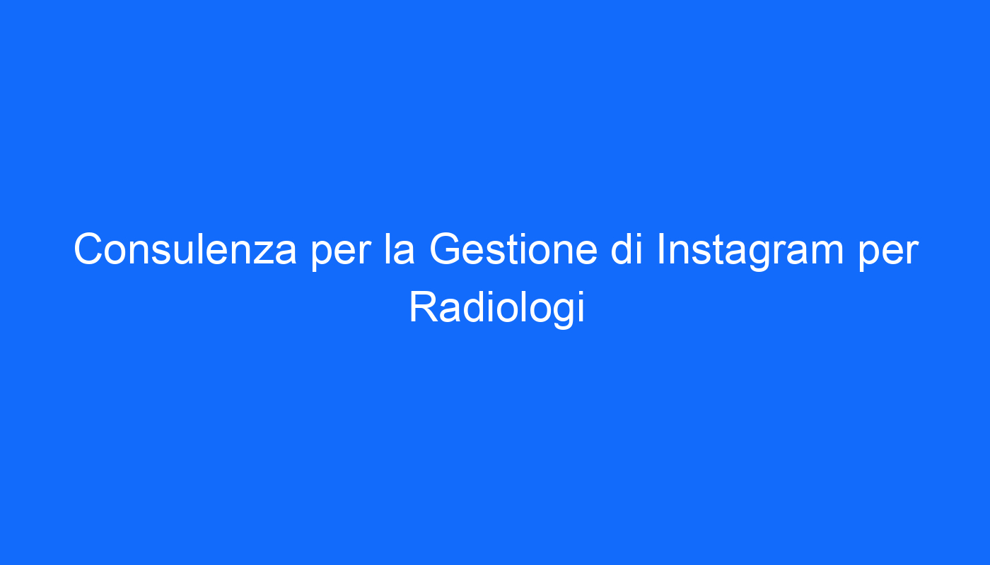 Quali sono i vantaggi di una consulenza professionale per la gestione di Instagram per radiologi?