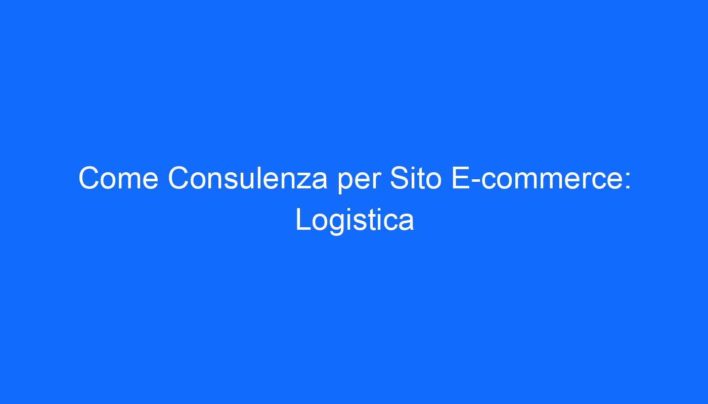 Come posso iniziare a beneficiare di una consulenza esperta per la logistica del mio sito e-commerce?
