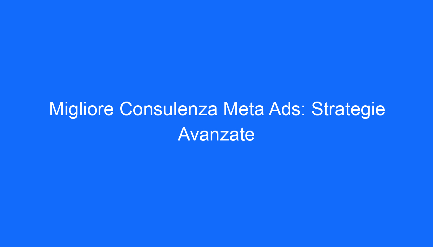 Se desideri ottenere risultati concreti con le tue campagne pubblicitarie su Meta Ads, la Consulenza Meta Ads con Strategie Avanzate ti offre la possibilità di personalizzare al massimo le tue strategie pubblicitarie.