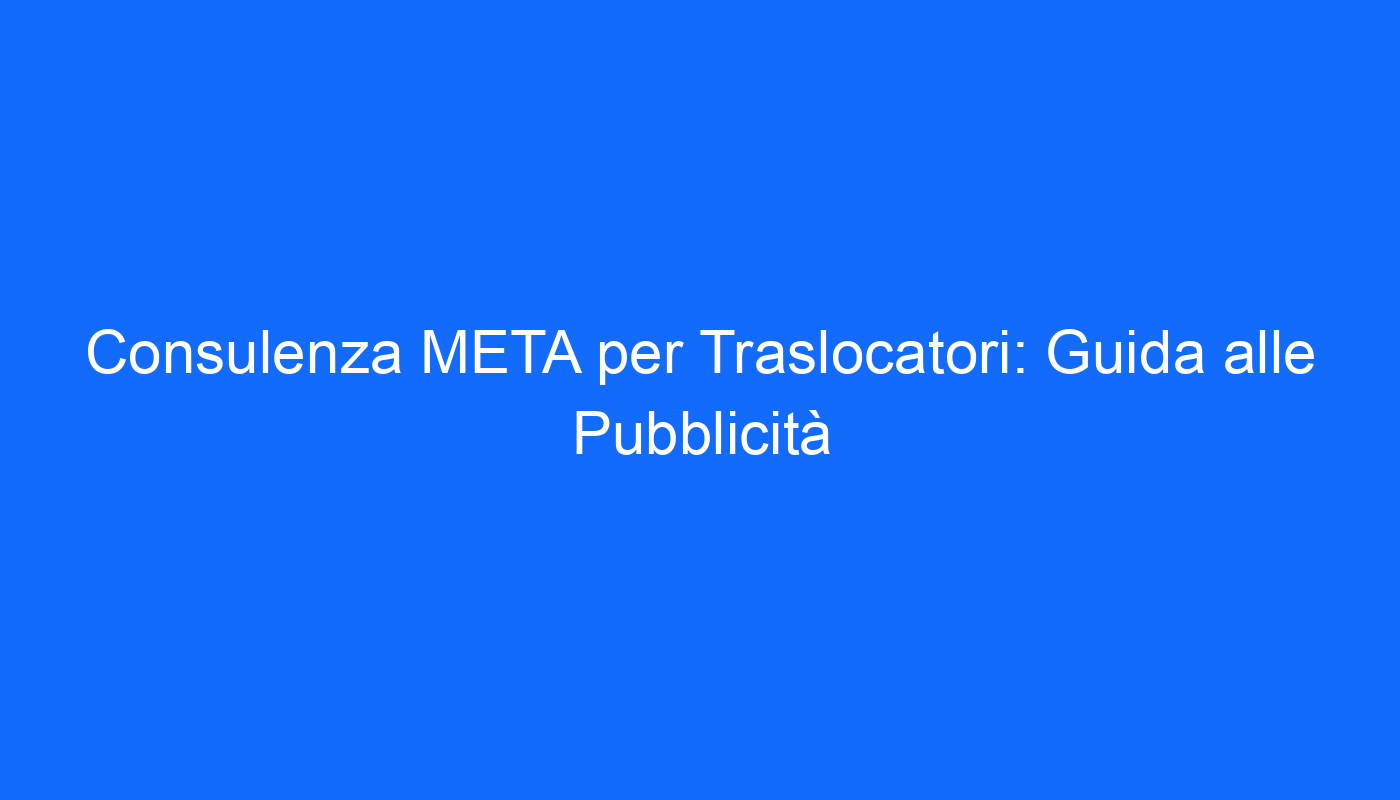 Nel mondo competitivo dei traslochi, avere una strategia pubblicitaria efficace è cruciale per attrarre nuovi clienti e aumentare il proprio fatturato. La consulenza META rappresenta un’opportunità imperdibile per i traslocatori che desiderano rafforzare la loro presenza online e massimizzare il ritorno sull’investimento (ROI) delle loro campagne pubblicitarie. In questo articolo esploreremo come la Consulenza META possa rivoluzionare la tua pubblicità, ottimizzando le strategie e portando il tuo business a nuovi livelli di successo.