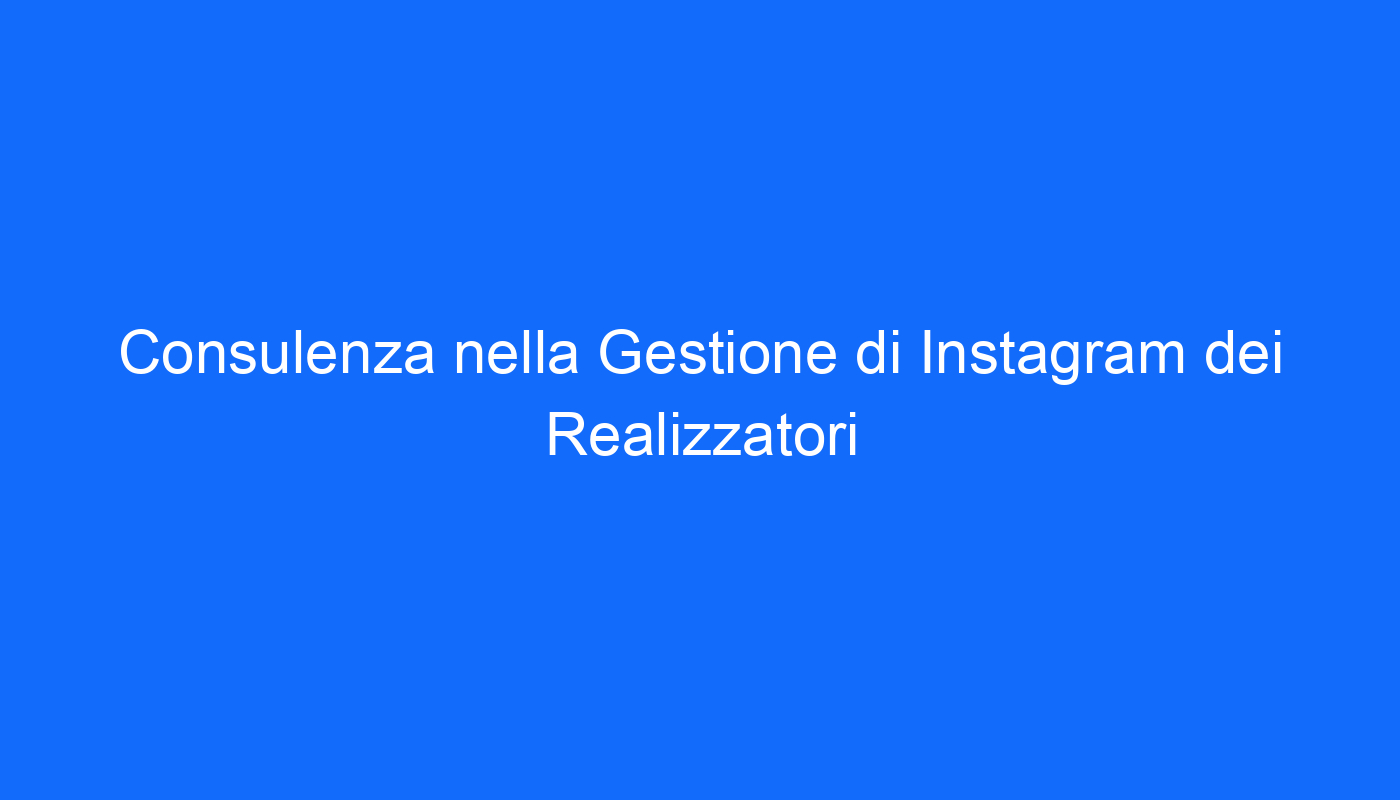 Quali sono i vantaggi di una consulenza nella gestione di Instagram dei realizzatori?
