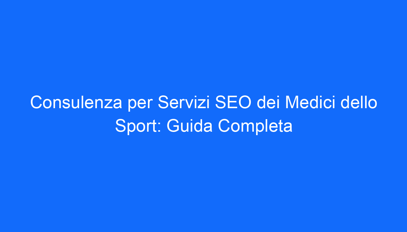 La Guida Completa alla Consulenza SEO per i Medici dello Sport: Incrementa il tuo successo professionale