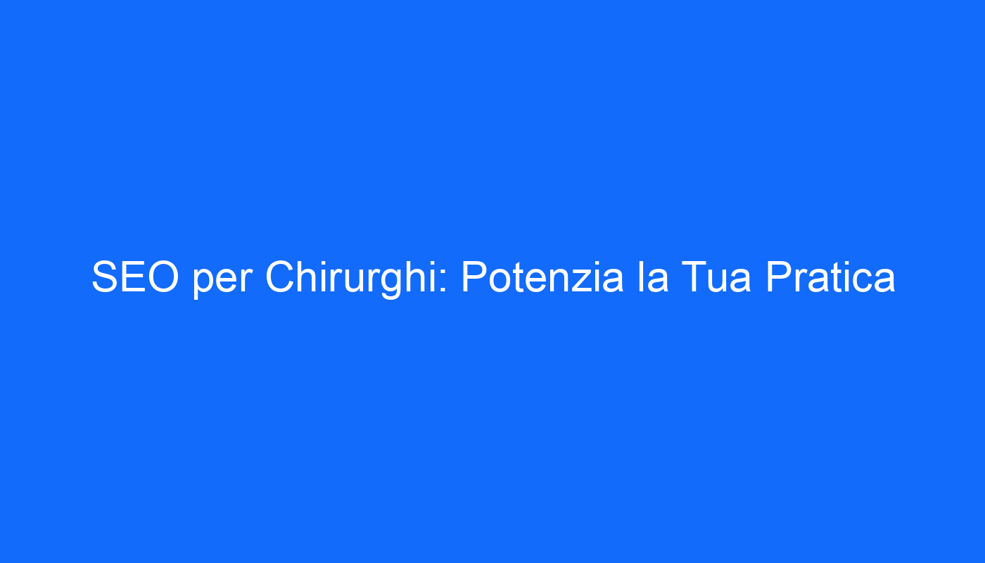 Potenziare la tua Pratica Chirurgica con una Consulenza SEO Specializzata