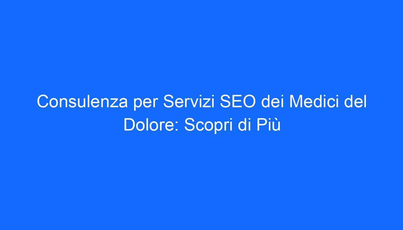 La consulenza SEO per i medici del dolore si basa su una serie di strategie e tecniche per migliorare la visibilità online. Ecco alcuni degli aspetti chiave della consulenza SEO per i medici del dolore: