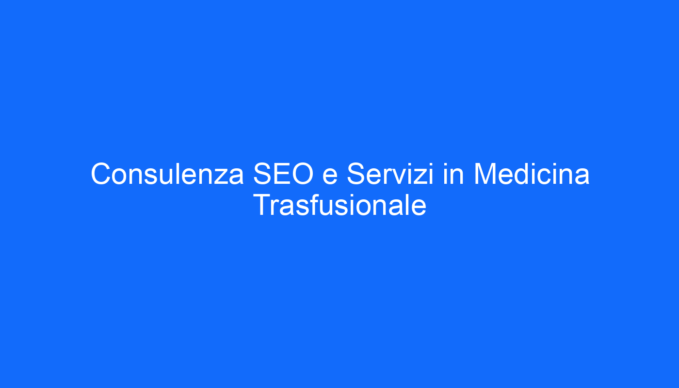 Come scegliere la migliore consulenza SEO per la medicina trasfusionale?