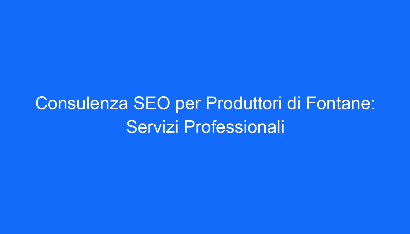 La consulenza SEO per produttori di fontane: un servizio essenziale per l’ottimizzazione della visibilità online