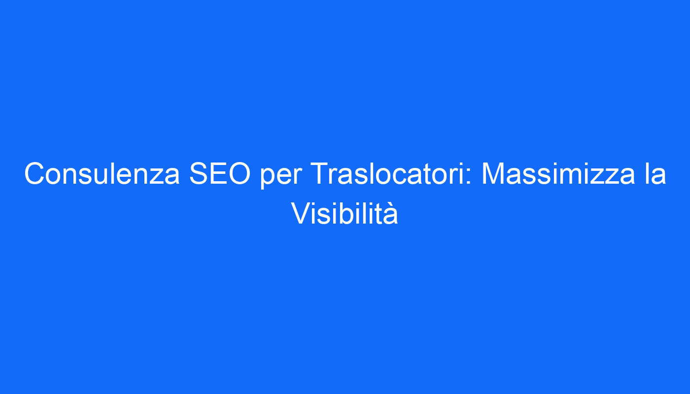 Consulenza SEO per Traslocatori: Massimizza la Visibilità