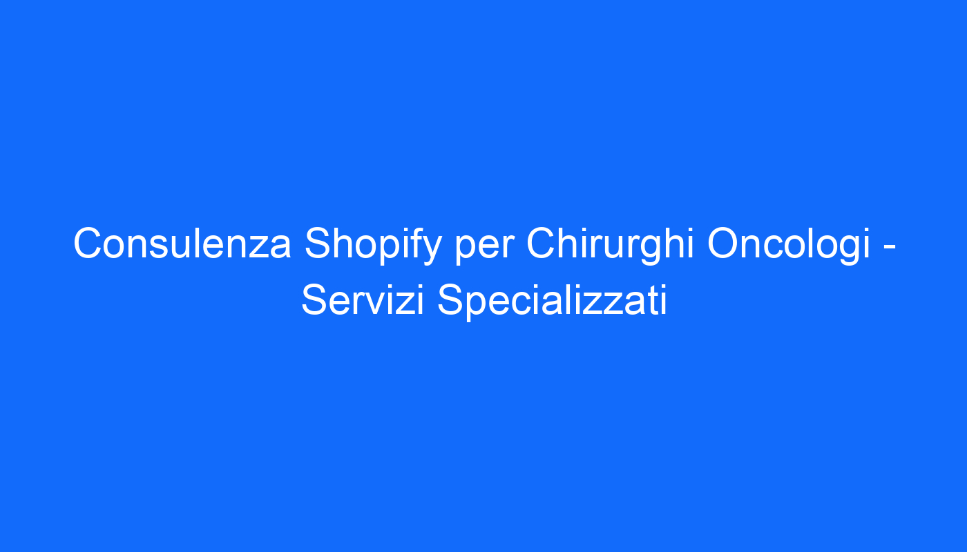Nel mondo di oggi, la presenza online è diventata essenziale per raggiungere il successo professionale. Anche come chirurgo oncologo, è importante essere visibili online per raggiungere un pubblico più ampio e fornire informazioni e servizi di qualità ai pazienti. La consulenza Shopify per chirurghi oncologi è un servizio specializzato che ti aiuterà a creare un negozio online di successo nel settore medico. In questo articolo, esploreremo i vantaggi di utilizzare Shopify come piattaforma e i servizi specializzati offerti per aiutarti a raggiungere i tuoi obiettivi professionali.