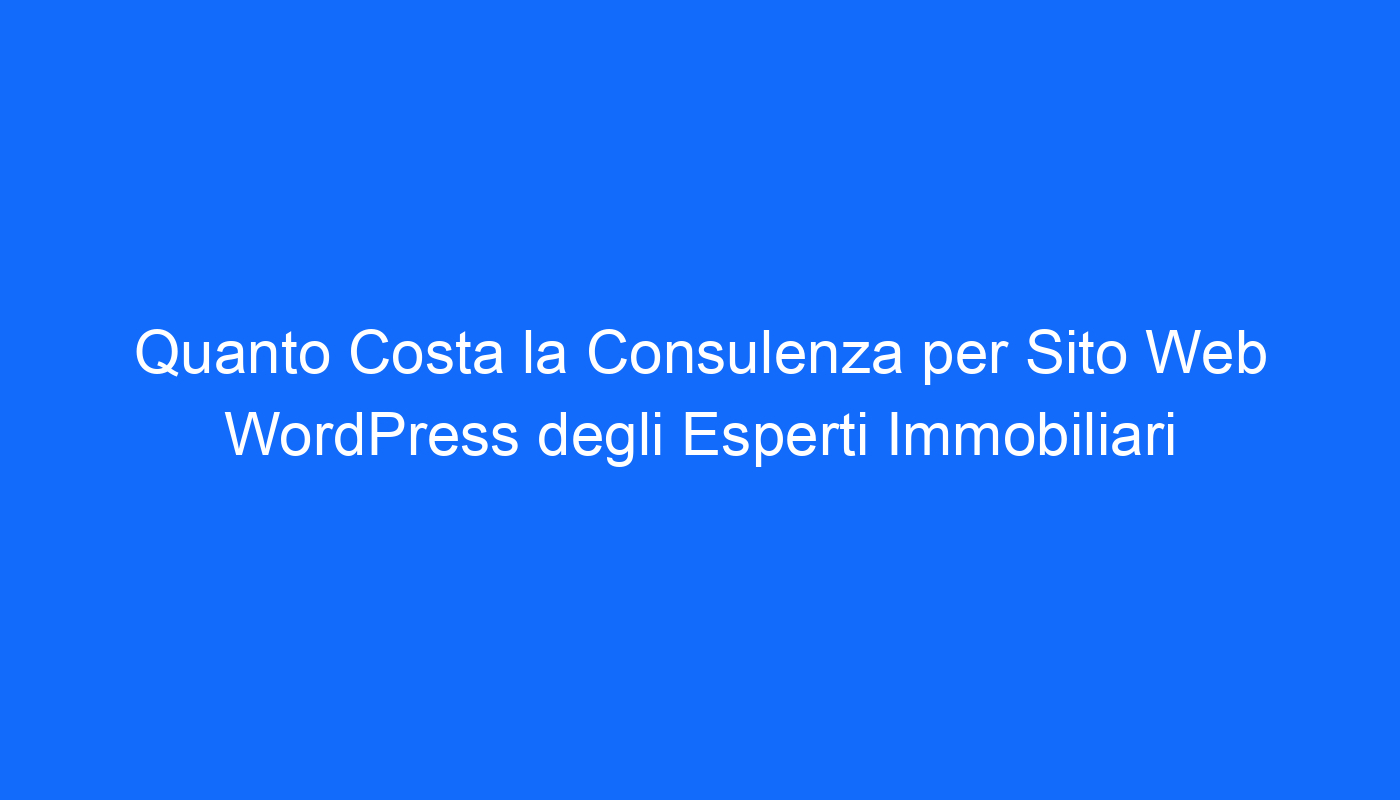 Quanto costa la consulenza per un sito web WordPress degli esperti immobiliari?