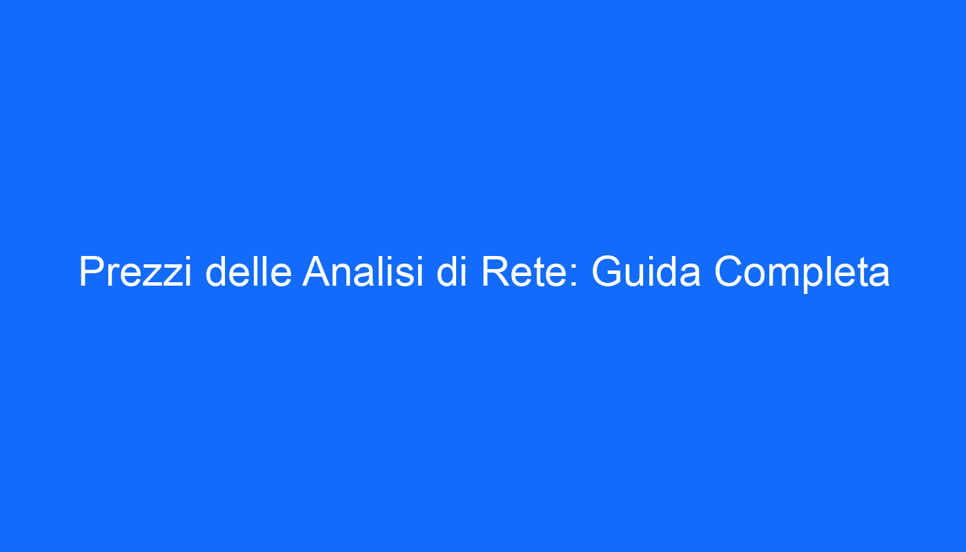 Scoprire il Costo delle Analisi di Rete: Un Investimento per il Futuro