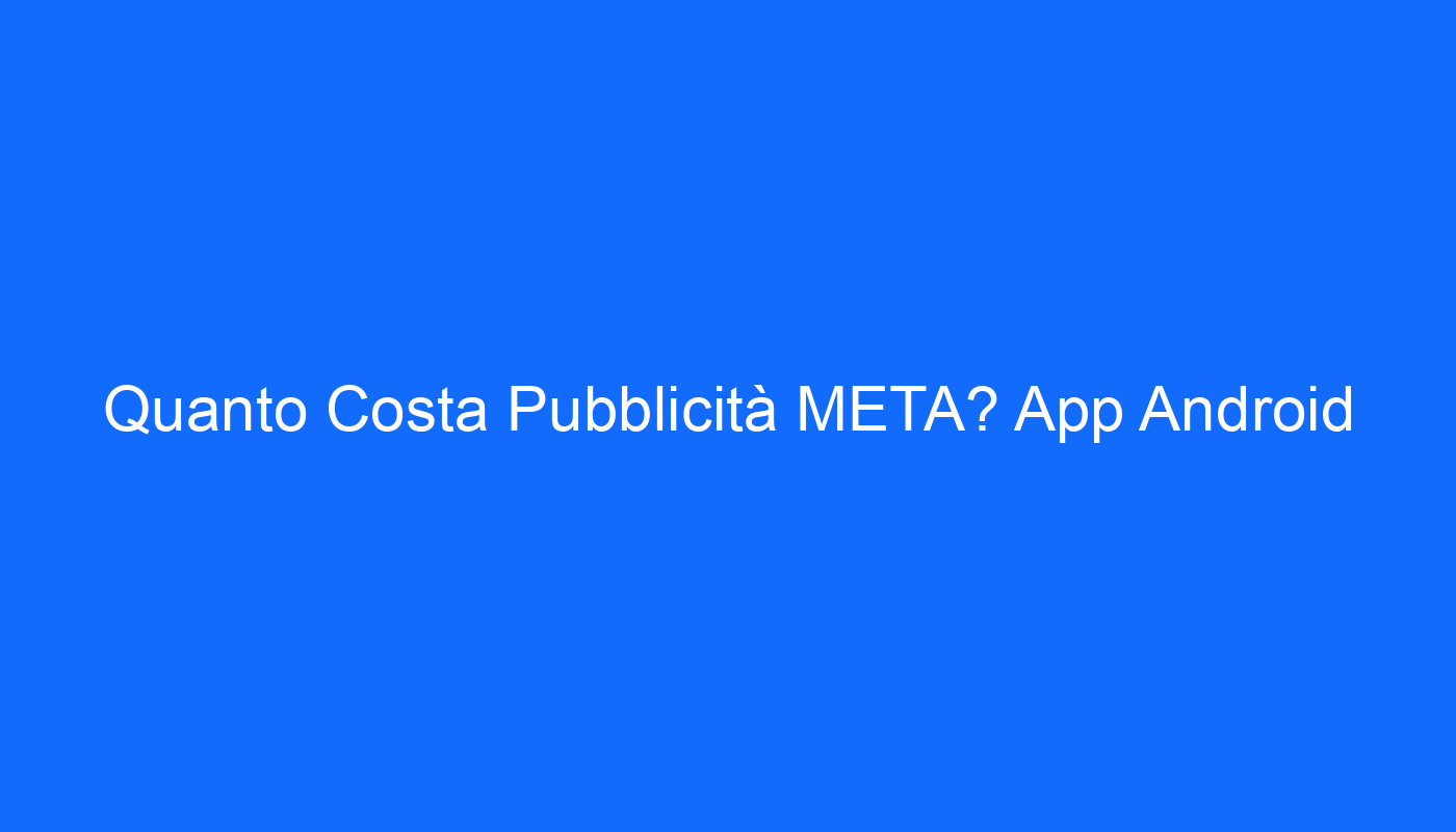 Quanto costa utilizzare Quanto Costa Pubblicità META per promuovere la tua App Android?