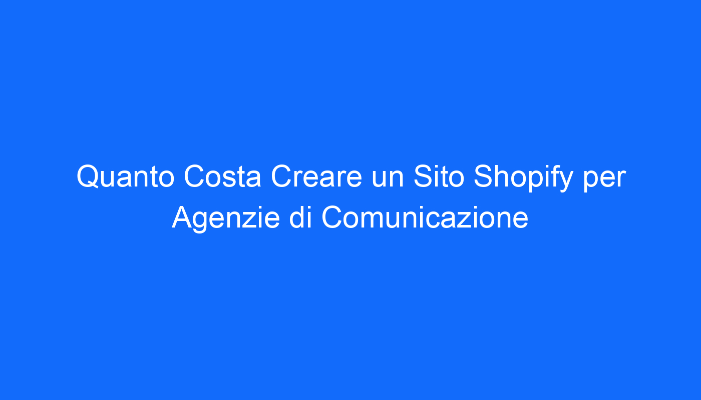 Ottieni un Sito Shopify Professionale a Costi Accessibili per la Tua Agenzia di Comunicazione