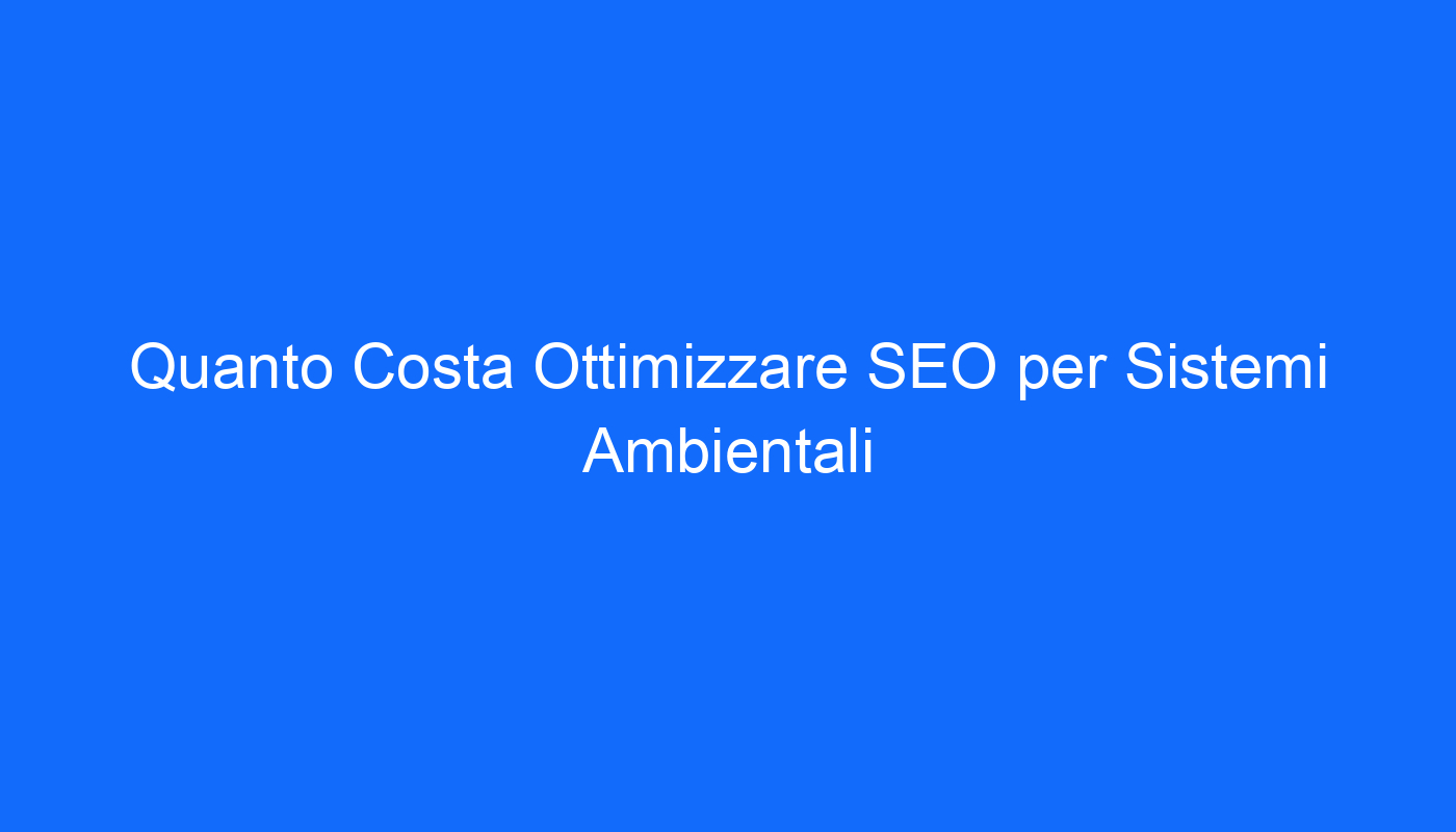 Quanto costa ottimizzare la SEO per i sistemi ambientali?