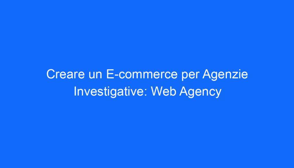Parlando di agenzie investigative, potresti essere interessato/a a Agenzia Investigativa. Inoltre, potrebbe interessarti E-commerce, che è strettamente correlato alla creazione di un negozio online per agenzie investigative. Infine, se vuoi approfondire il concetto di Web Agency, puoi consultare l’apposito articolo su Wikipedia.